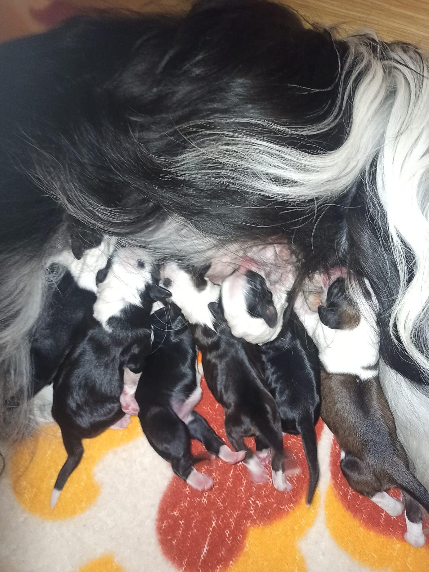 *12. 10. 2022 se z jejich lásky narodilo 6 krásných štěňátek. 4 pejsci - dva černobílí, dva sobolí s bílými znaky a 2 černobílé fenky.